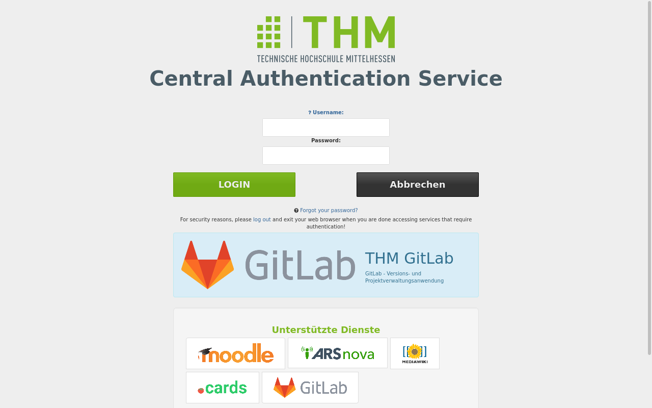 Wichtig: Achten Sie darauf, dass die angegeben E-Mail-Adresse mit der E-Mail-Adresse Ihres git.thm.de-Profils übereinstimmt! Eine Zuordnung Ihrer Commits zu Ihrem Profil kann ansonsten nicht stattfinden. Dies kann insbesondere bei Prüfungsleistungen problematisch sein.