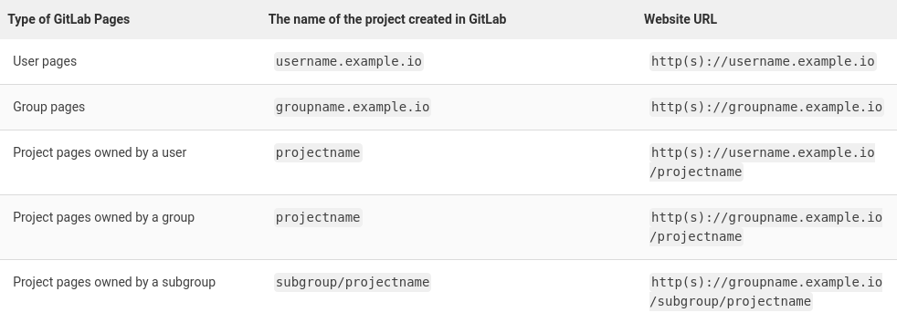 Sie können auch Gruppen- und User-Pages erstellen, indem Sie einem Projekt einen bestimmten Namen geben: